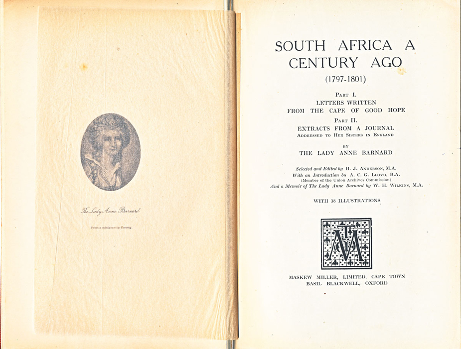The Letters of Lady Anne Barnard to Henry Dundas : from the Cape and elsewhere, 1793-1803, together with her journal of a tour into the interior and certain other letters, présenté par A. M. Lewin Robinson, Le Cap, A. A. Balkema, 1973.