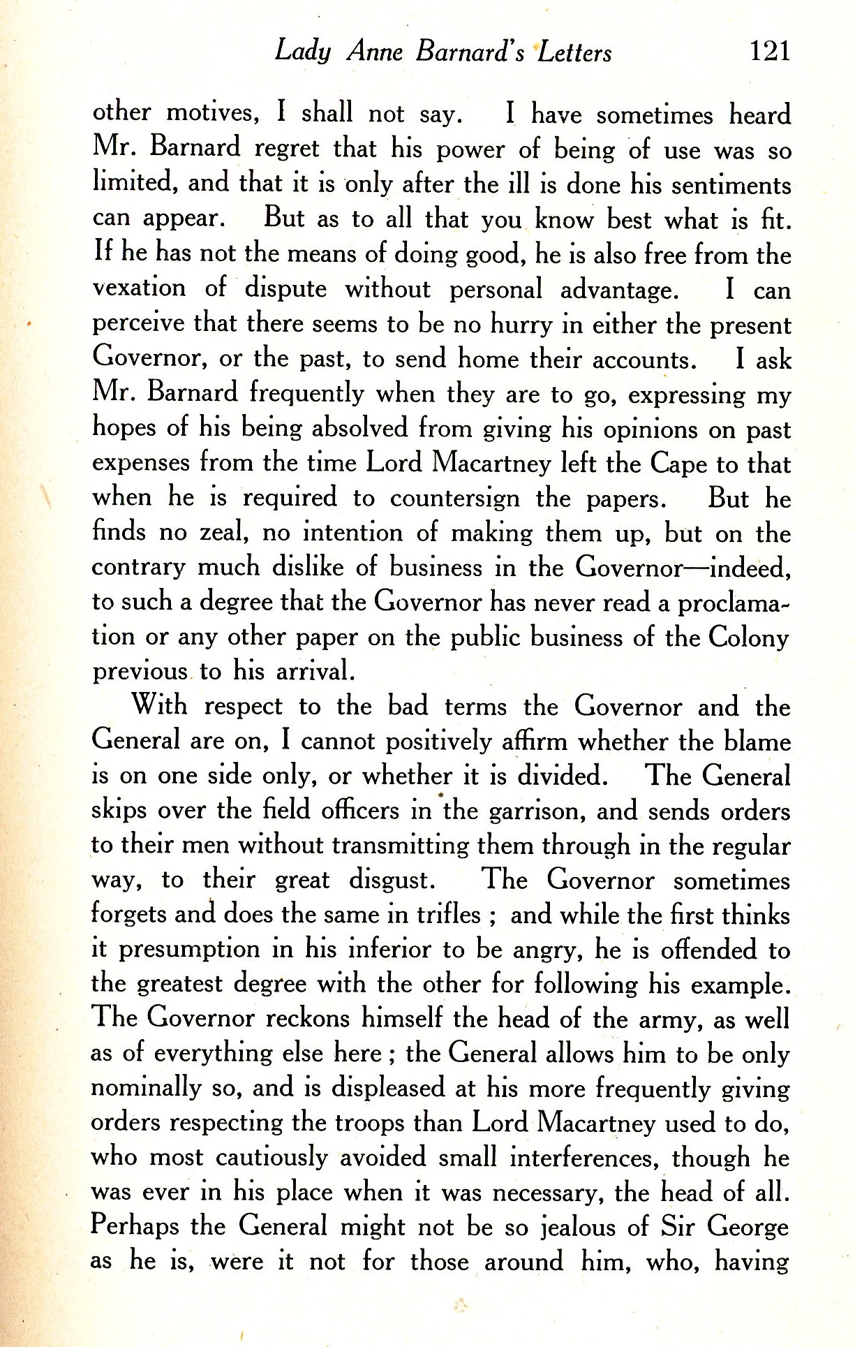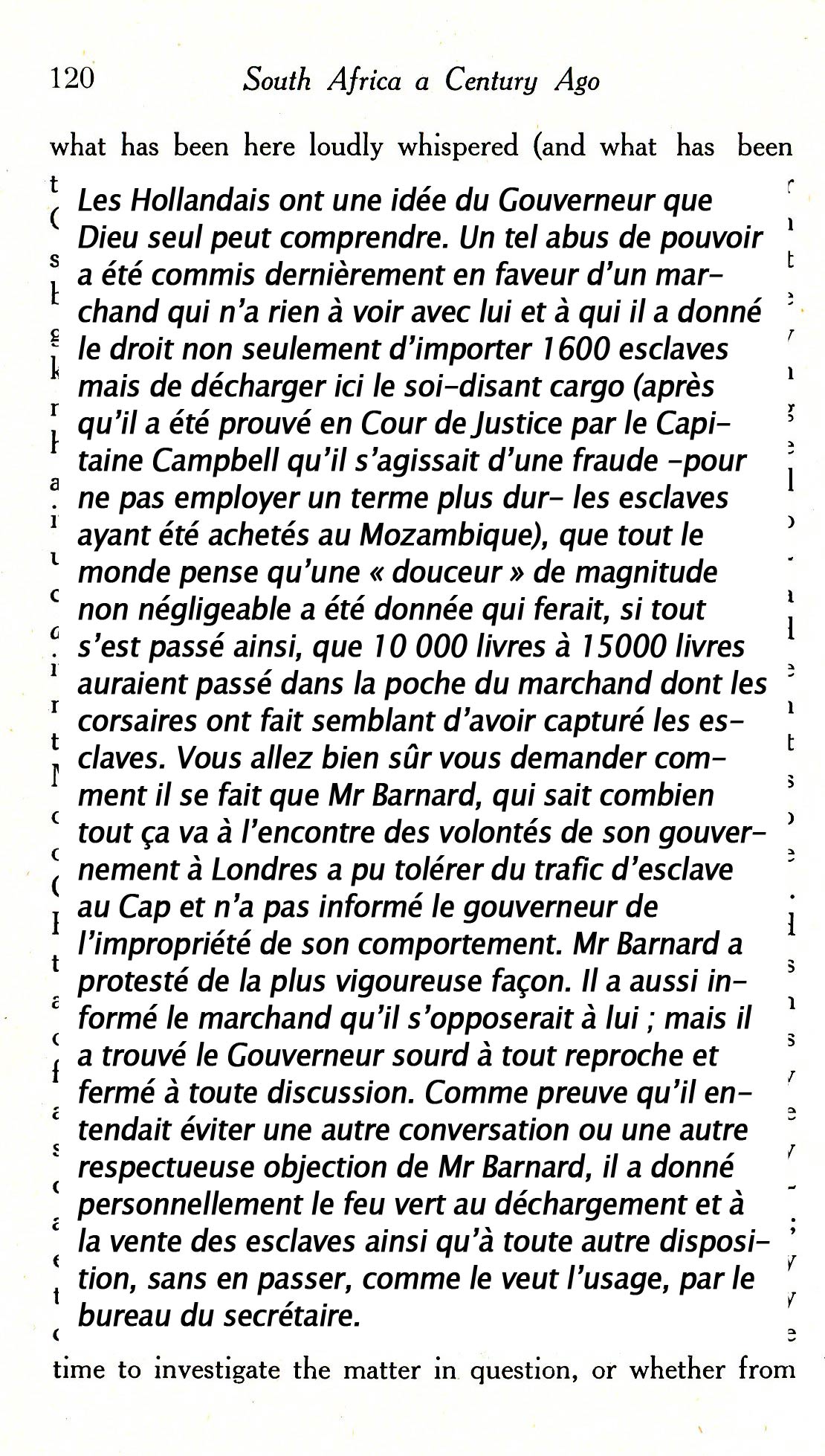 Britannique, mariée au gouverneur de la colonie anglaise du Cap, elle évoque la présence d'esclaves et la triste condition des Hottentots colonisés.