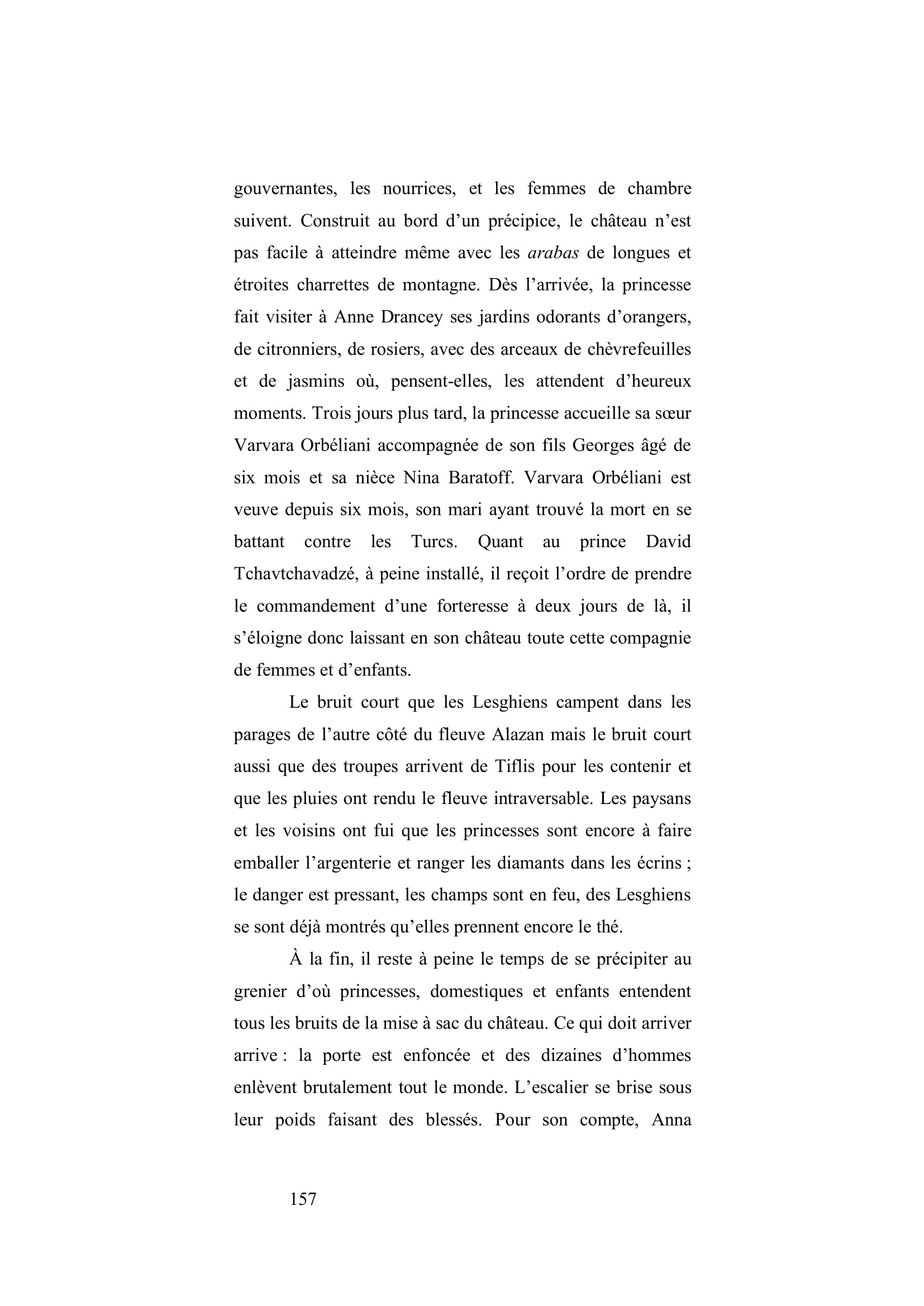 Institutrice française chargée de l’éducation de princesses géorgiennes, elle est faite prisonnière en 1854 par des Tchétchènes. Enlevée avec d’autres femmes et enfants de la cour, elle parcourt avec eux plus de mille cinq cent kilomètres dans les montagnes. Elle passera 7 mois de captivité jusqu’à sa libération contre un enfant de l’imam Chamyl (retenu otage à la cour de Russie) et une rançon importante. Son livre est un témoignage rare sur les mœurs des Tchétchènes et de la guerre qu’ils livraient contre le pouvoir du Tsar russe.