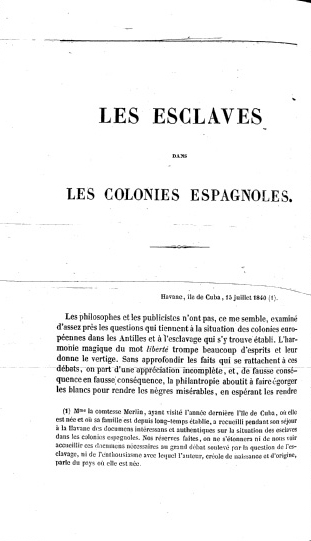 « Les esclaves dans les colonies espagnoles », La revue des Deux Mondes, t. 26, 1841 (758).