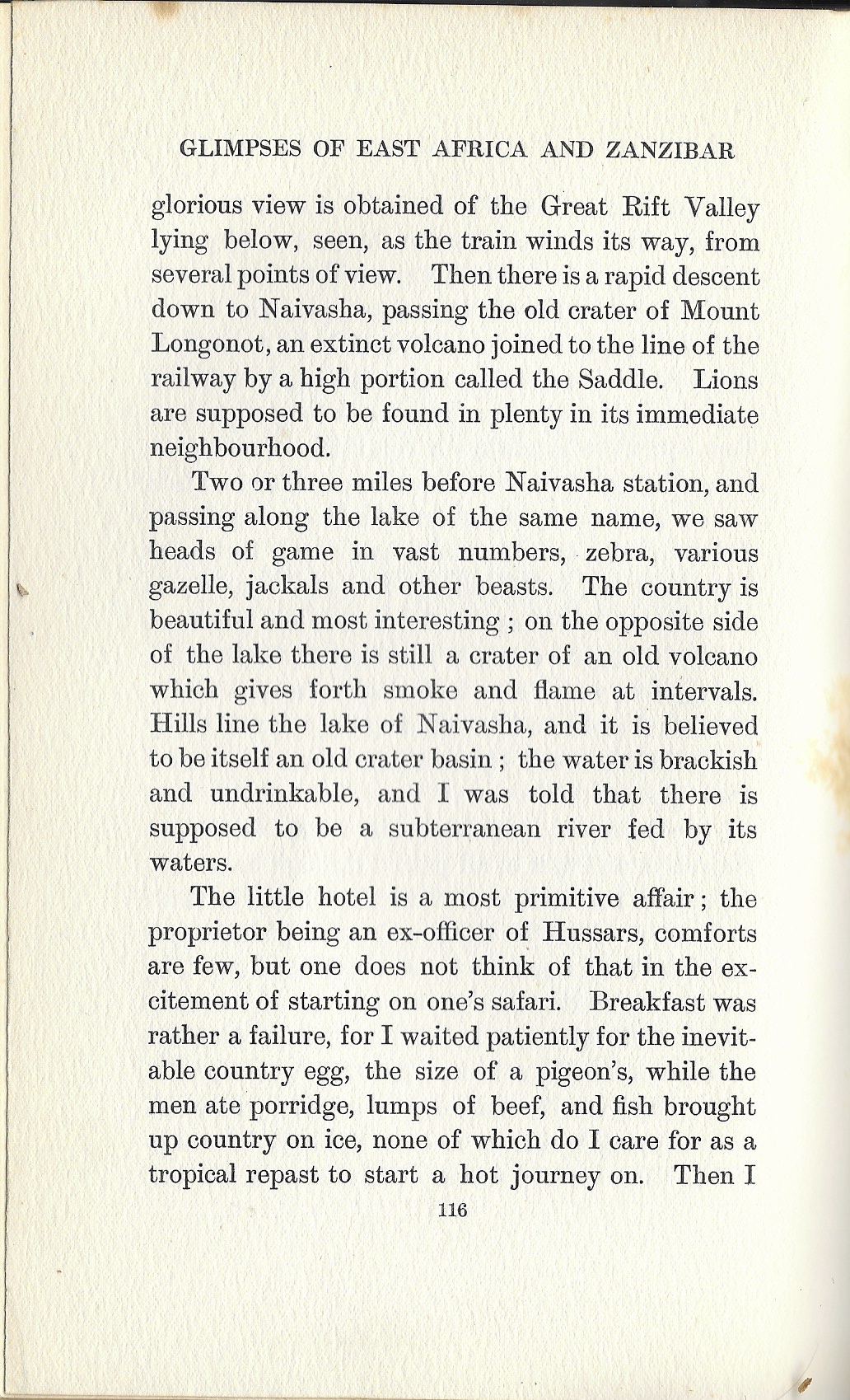 Britannique. Elle part avec son mari officier en Afrique orientale britannique où elle séjourne entre 1905 et 1906. Elle publie quatre ans après un livre rendant compte de la vie quotidienne des colons et des Africains en relevant la variation des usages selon les ethnies. Elle participe activement aux parties de chasse de son mari, s’enthousiasme de ses nombreuses mises à mort sans pour autant appuyer elle-même sur la gâchette.