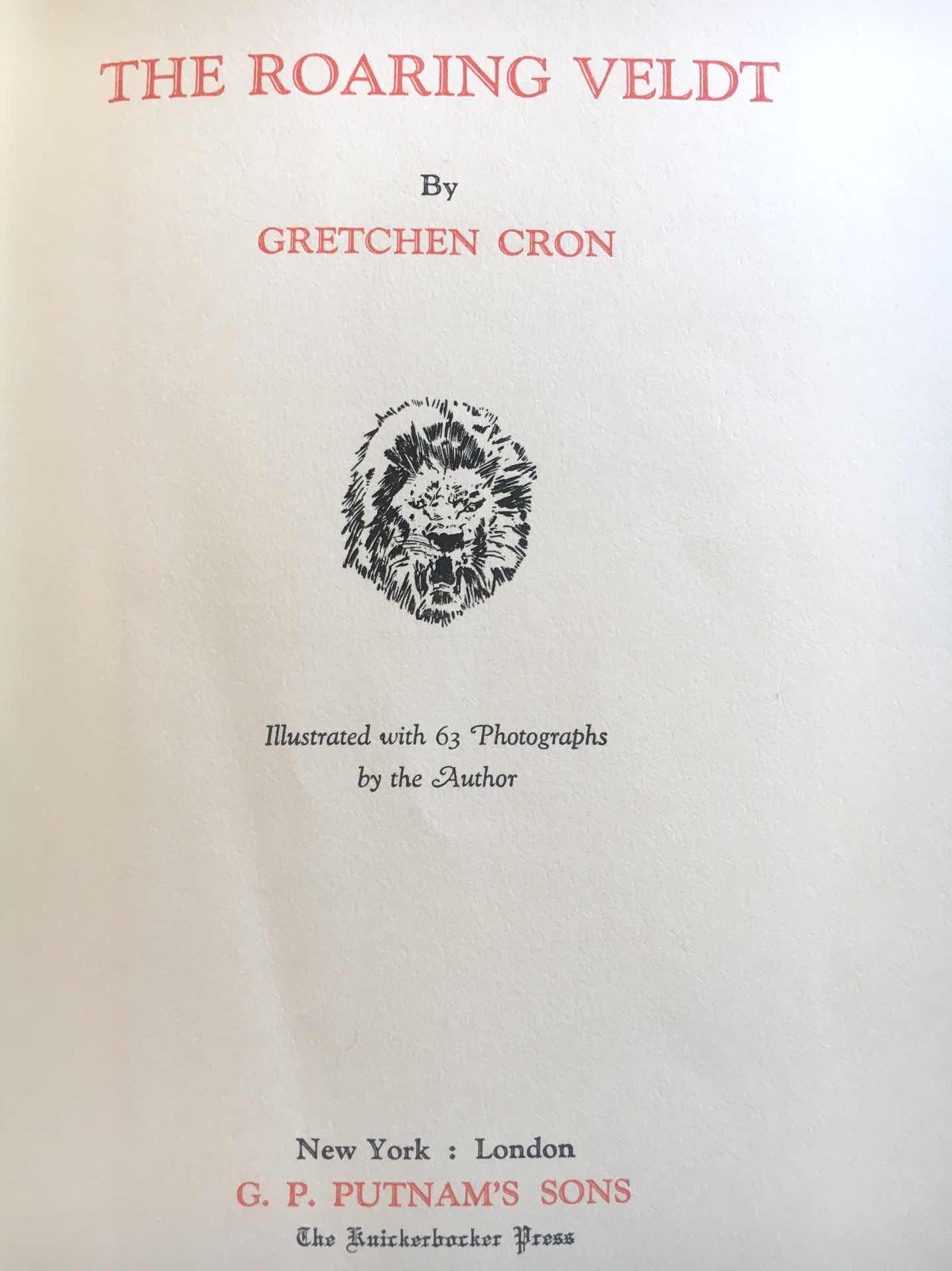 The Roaring Veld, New York, London, G. P. Putman’s sons, 1930.