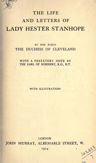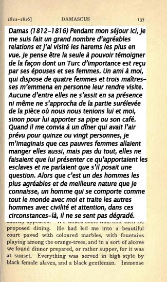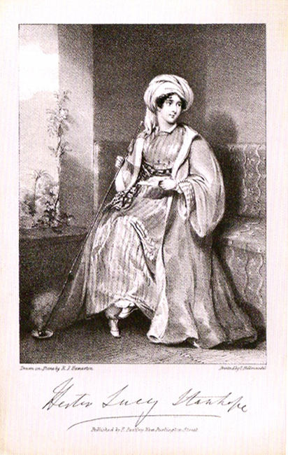 Britannique. Grande aristocrate dont le séjour en Orient, commencé dans les fastes, se termine dans l'abandon et la misère. Elle a laissé des documents utilisés pour sa biographe.