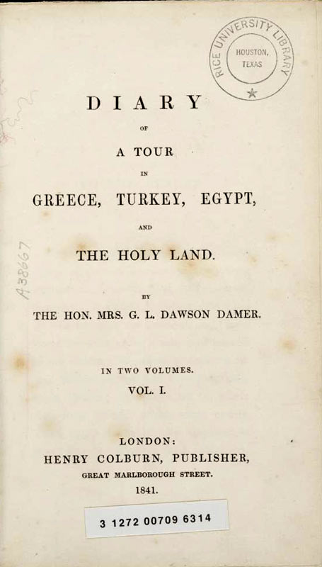 Anglaise, elle fait un voyage en Orient vers 1840. C'était l'épouse d'un homme politique britannique.