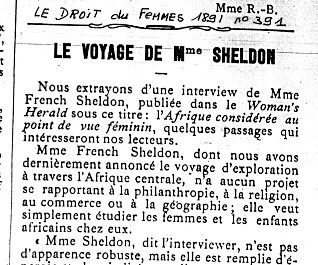 "Le voyage de Mme Sheldon", Le Droit des femmes, Mme R-B, no.391, 1891.
