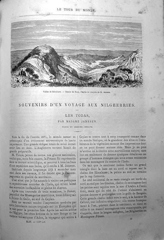 « Souvenirs d’un voyage aux Nilgherries. Les Todas », Le Tour du Monde