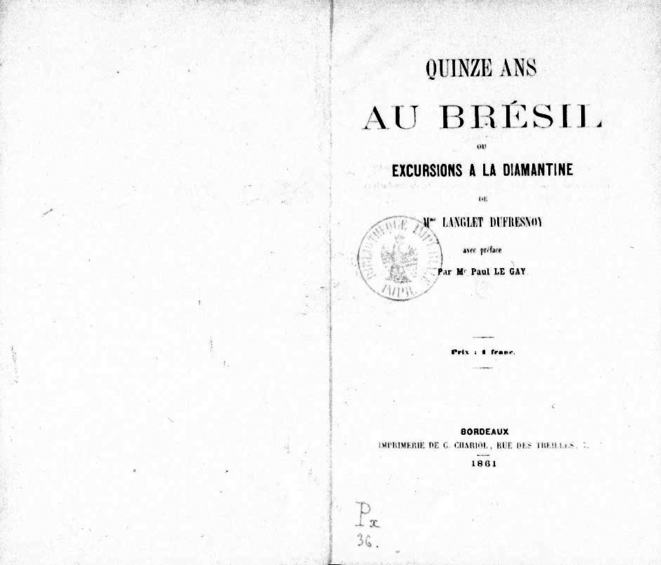 Alexandrine Lenglet (ou Langlet), née à St Jean d'Angely, se marie à dix-sept ans à un huissier, Alexandre Dufreynois, de Melle (Deux-Sèvres) qui ne rêve que d'aventure. La voilà donc partie pour quinze ans au Brésil où ils chercheront par tous les moyens à faire fortune y compris par le trafic d’esclaves ou la recherche de diamants. Il trouve la mort au cours du voyage et elle met des années à gagner l'argent de son retour, auprès de sa famille à Blaye en 1852.