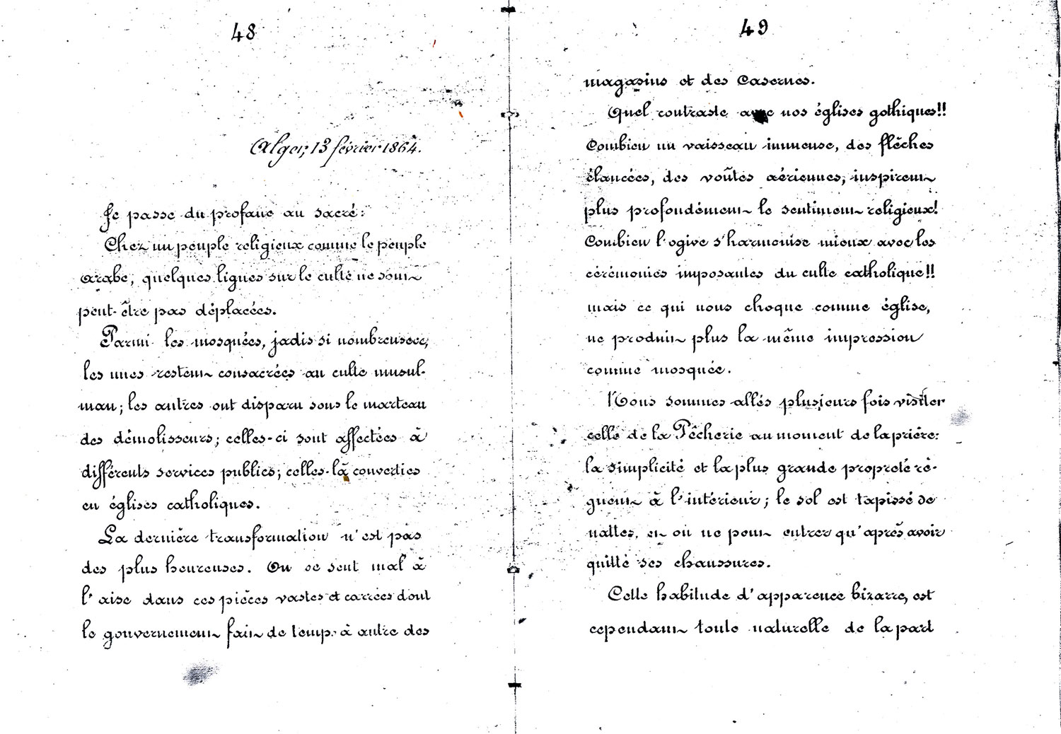 Souvenirs de voyage. Algérie et Tunisie. Correspondance, Langres, Autographe de Vathelet, 1868.
