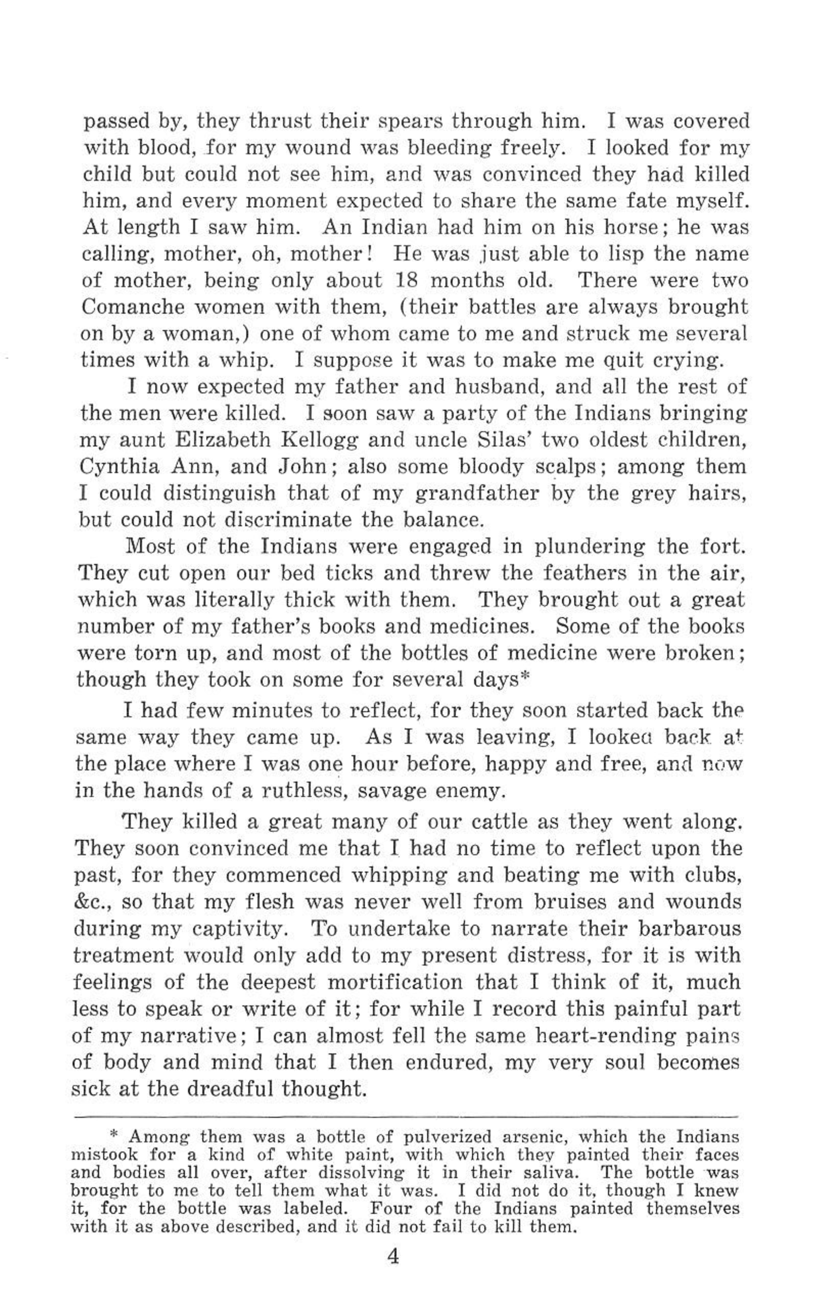 Récit de captivité par les Comanches en 1837 au Texas constitué à partir de propos rapportés. Enceinte, Rachel devra pourtant travailler d’arrache-pied pour la tribu. Une fois né, son enfant est tué. Sa captivité semble avoir été particulièrement horrible.