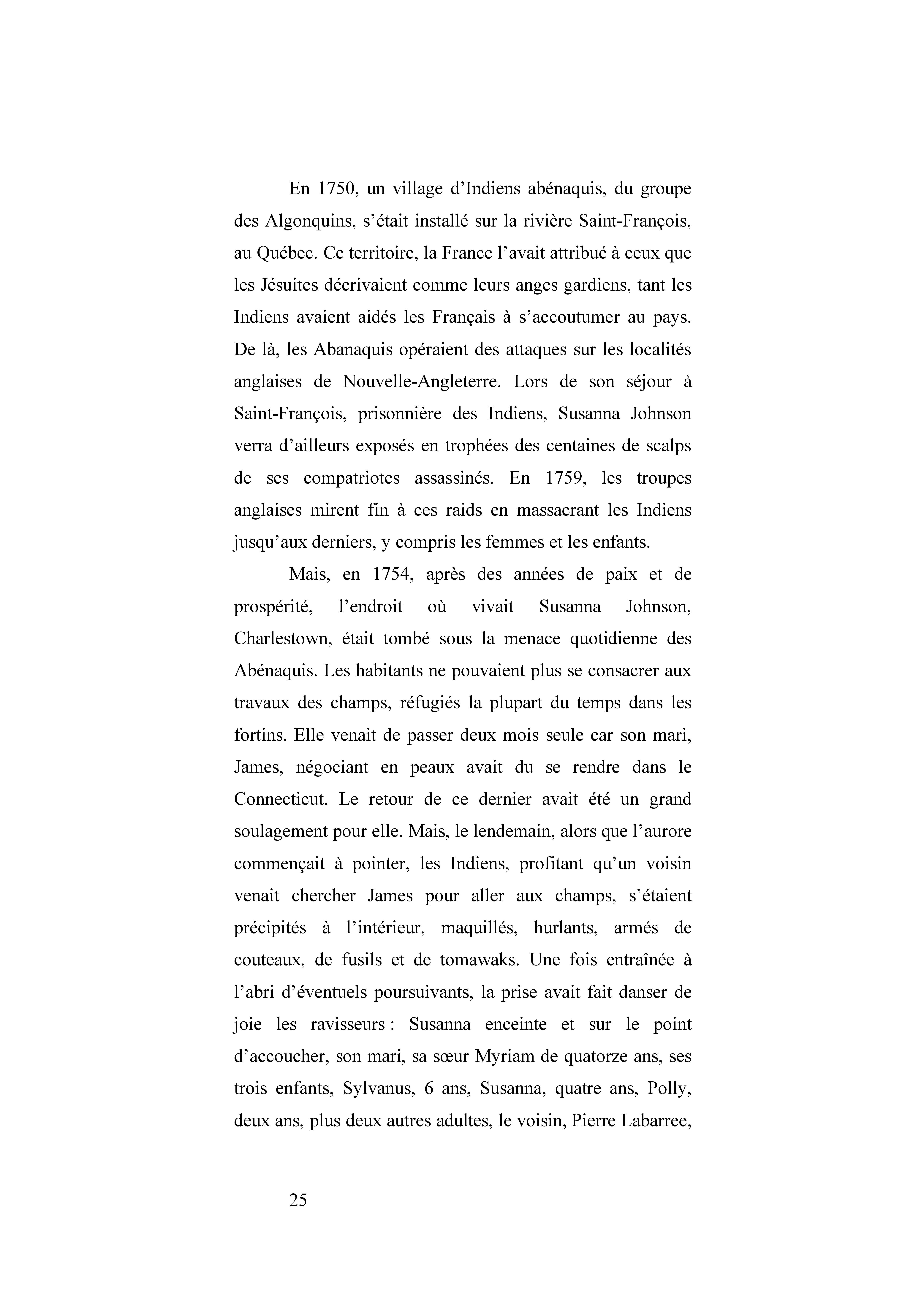 Colon anglaise, elle est enlevée en 1754 avec toute sa famille en Nouvelle-Angleterre par des Abenaquis acquis à la cause française, alors que fait rage la guerre dite de Sept Ans. Susanna passe d’abord quelques semaines aux mains des Indiens et quatre ans et demi aux mains des Français au Québec. Ceux-ci finiront par l’expulser vers le Royaume-Uni. Elle publie son Récit d’une captive en Nouvelle-France, 1754-1860 à New York en 1796.