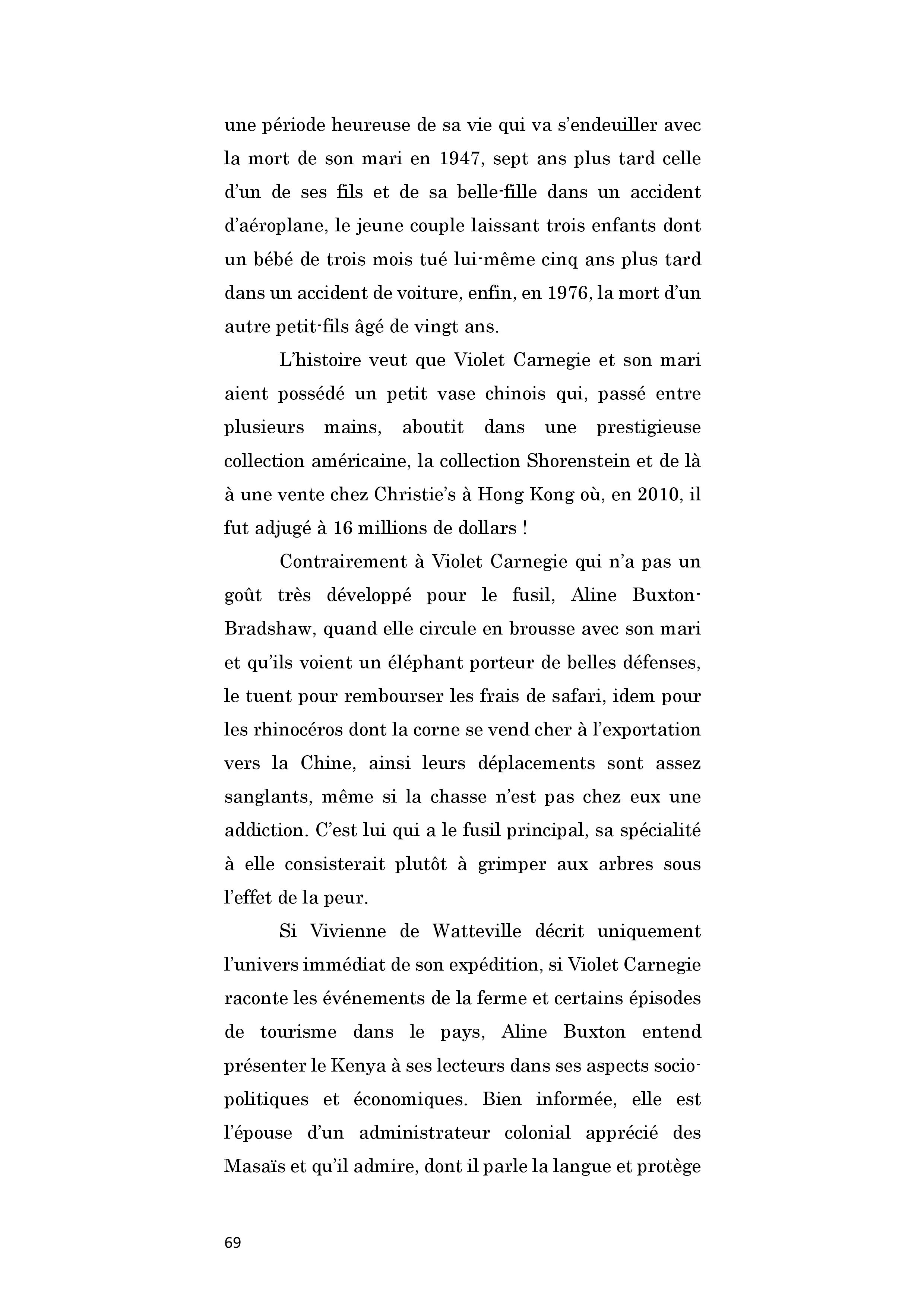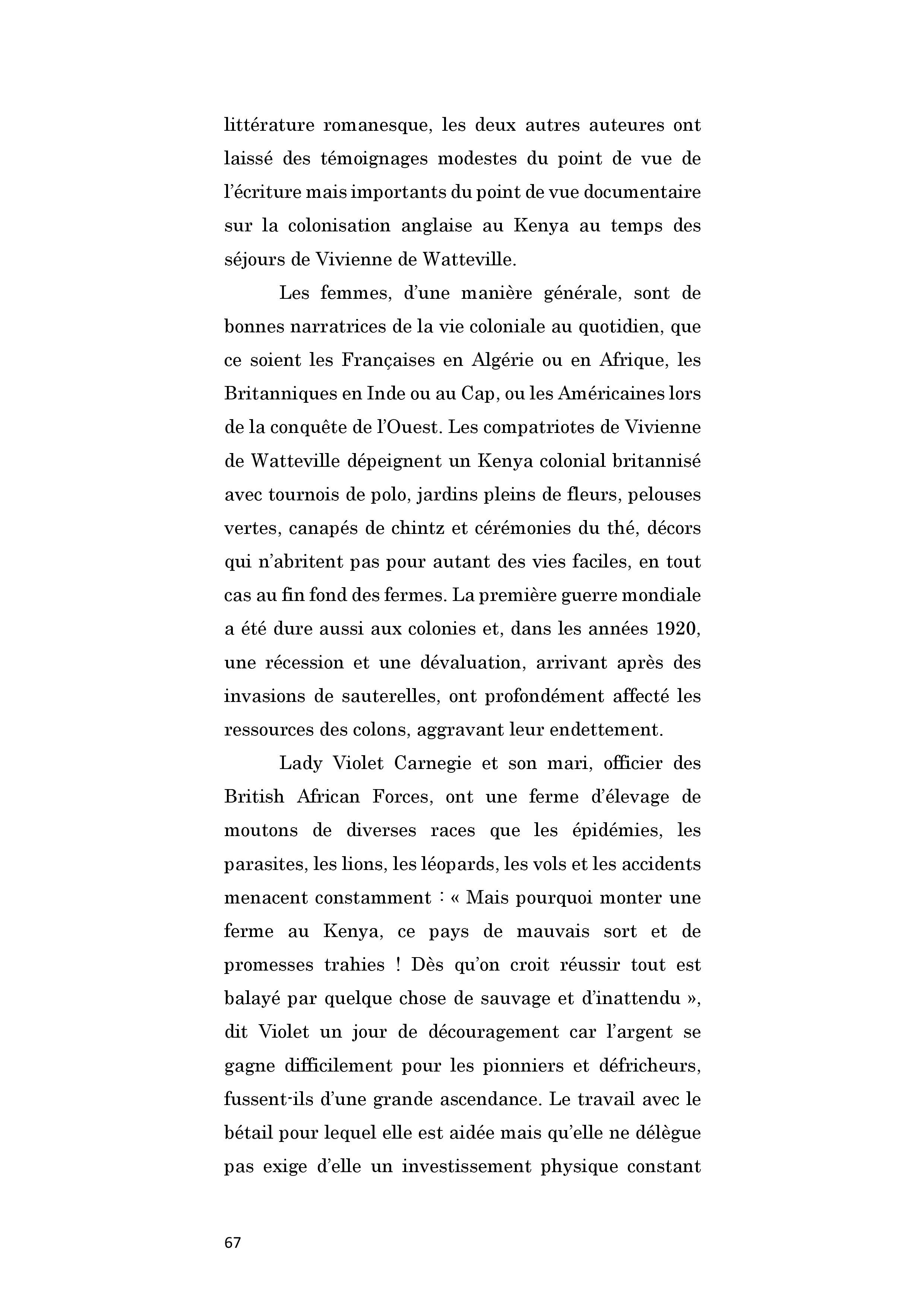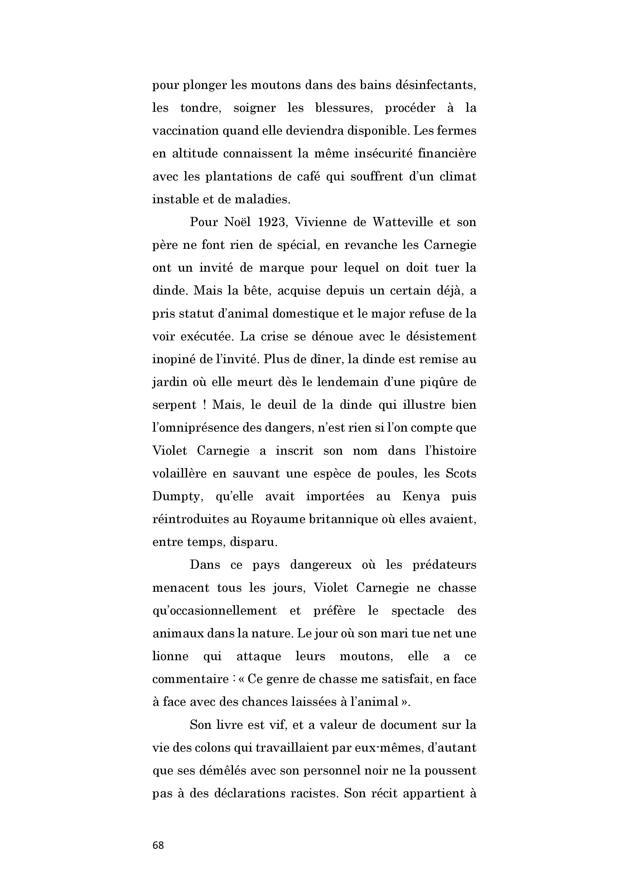 Britannique. En 1913, elle rejoint son mari militaire au Kenya. Ils créent une ferme d’élevage d’ovins. La rentabilité de l’entreprise est rendue très difficile par les attaques répétées des parasites, maladies et autres prédateurs. Peu portée sur la chasse, elle ne se réjouit que lorsque son mari tue des fauves qui s’approchent trop près des troupeaux. Elle a laissé un excellent témoignage sur la vie quotidienne des colons et leur difficile engagement dans des entreprises exigeantes physiquement et à haut risque économique, ses relations avec les natifs kenyans paraissant notablement dépourvues de racisme.