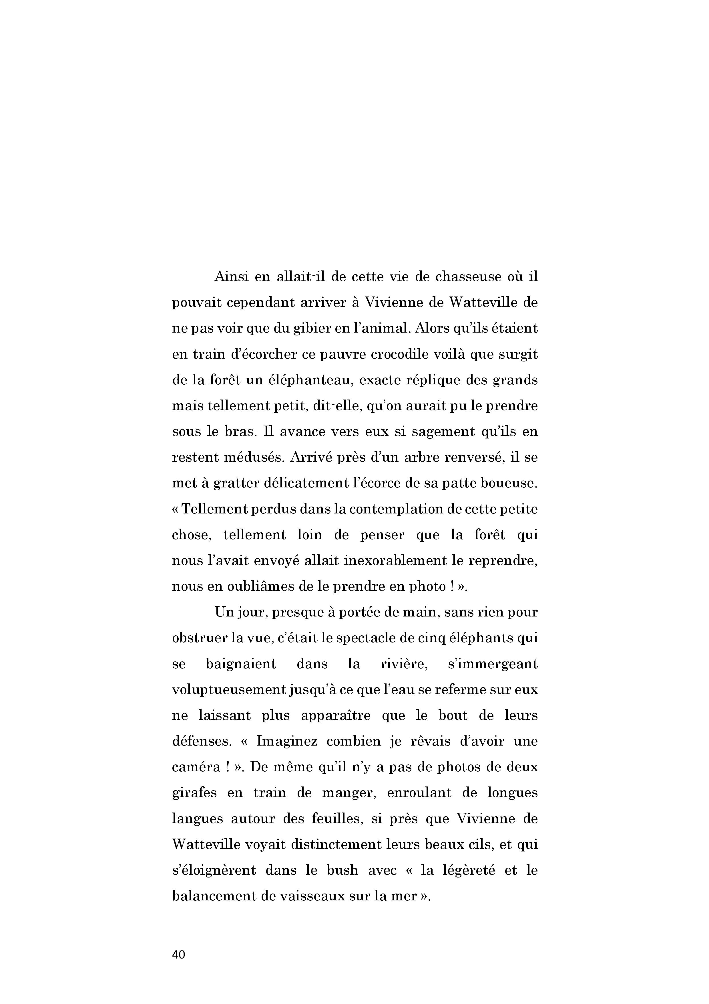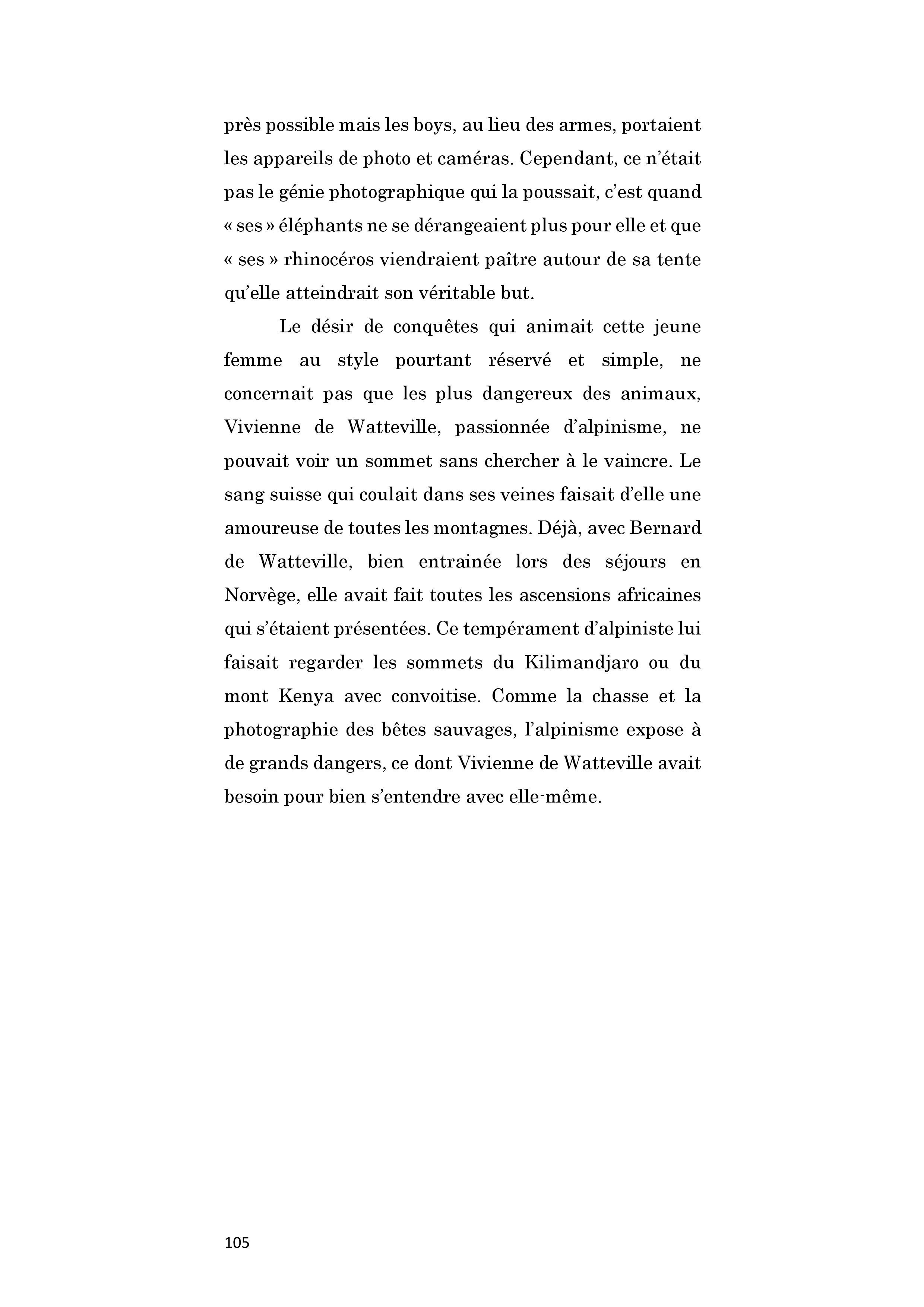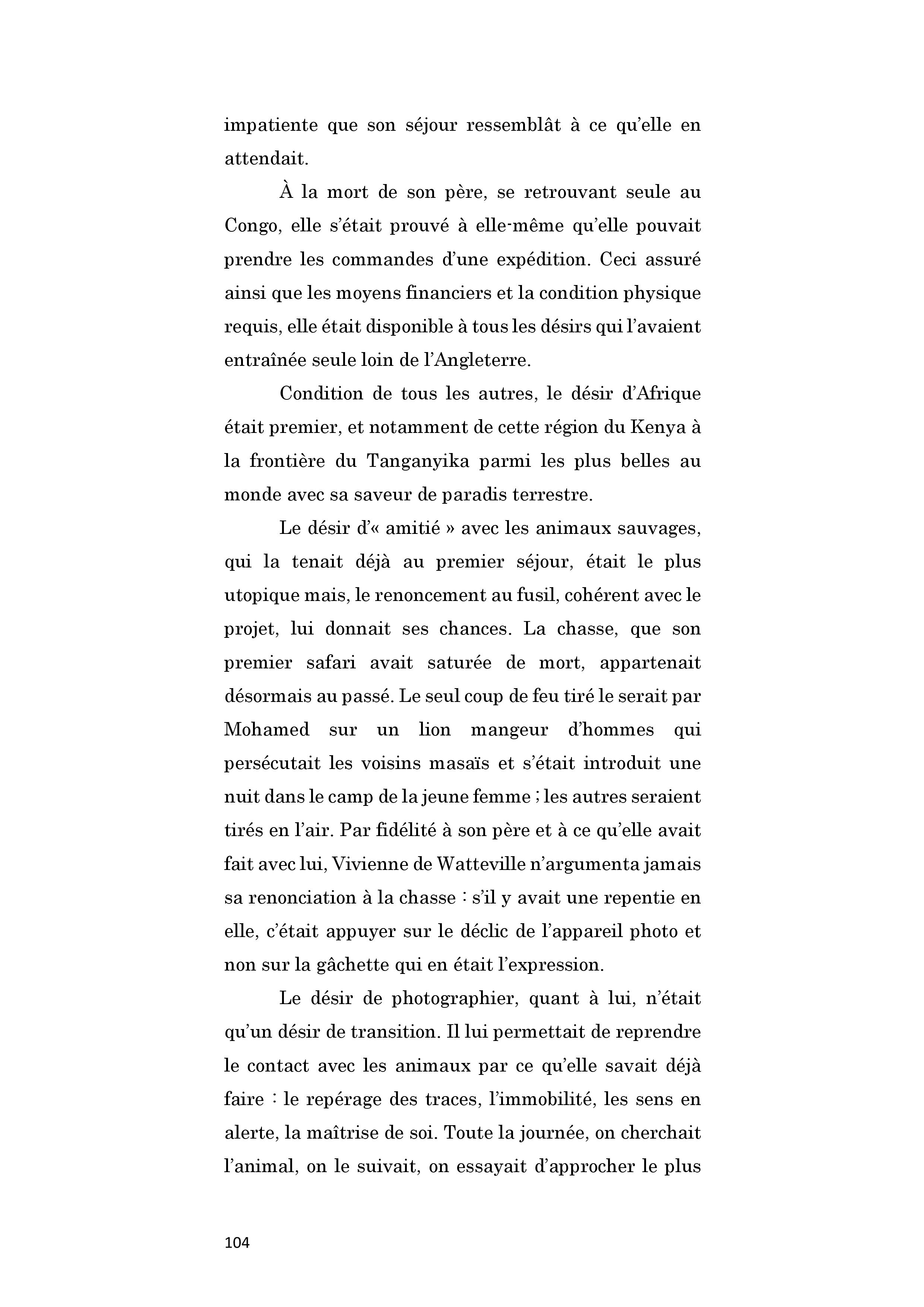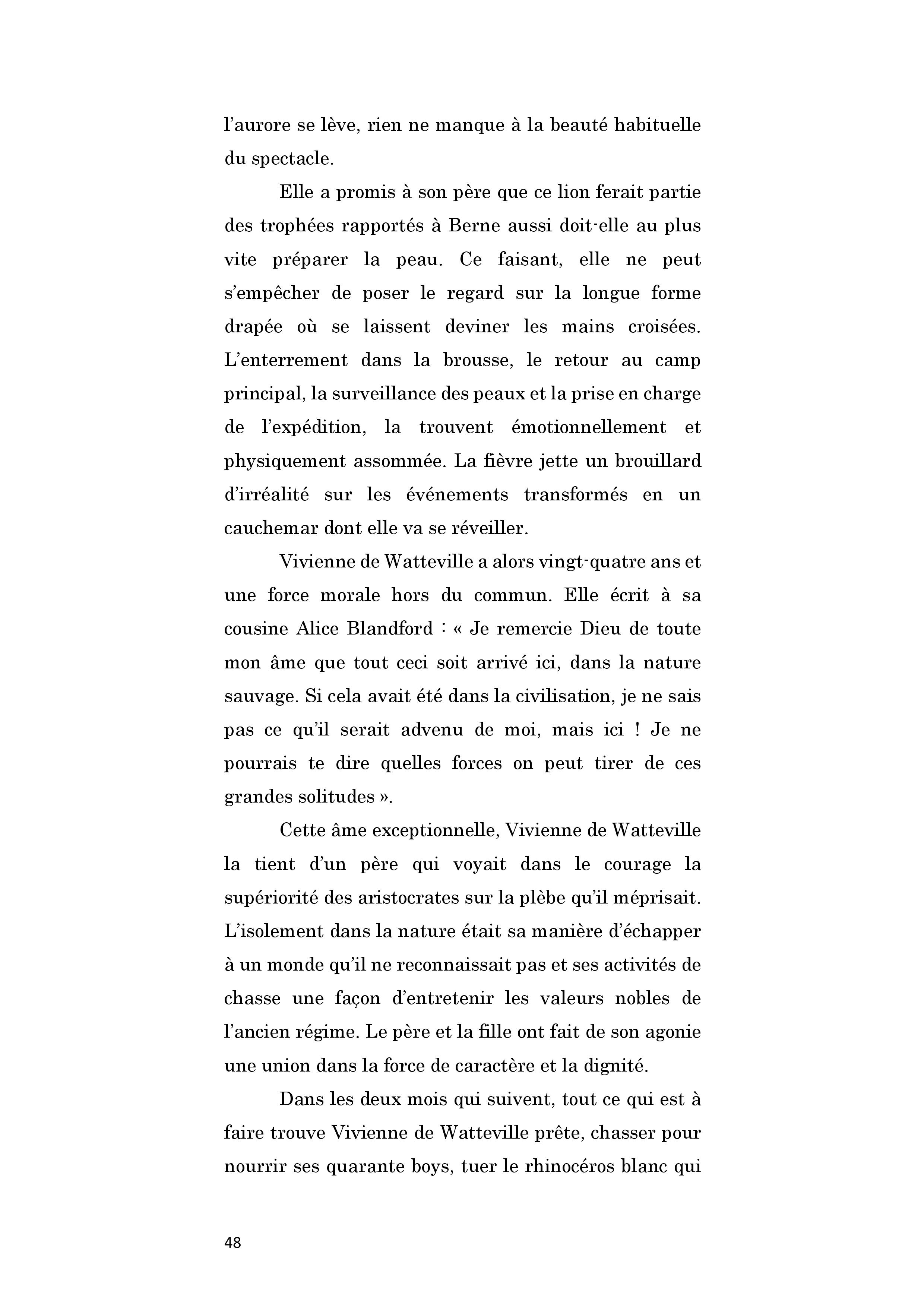 Britannique. Orpheline de mère à neuf ans, elle arrive avec son père en Afrique de l’Est en 1926 alors qu’elle n’est encore qu’une jeune fille. Naturaliste, Bernard de Watteville tue des dizaines d’animaux pour le musée de Berne. Vivienne aime le seconder et pratique méthodiquement le dépeçage préparant le travail des taxidermistes suisses. Ils se déplacent à pied avec leurs boys et leur équipement, suivant le gibier, et vivent de longues semaines exclusivement dans la brousse, dormant sous les tentes, entourés des fauves, subissant les intempéries et les maladies tropicales. C'est de près d’une centaine de spécimens qu'ils vont doter les dioramas du musée de Berne. Vivienne s'éprend profondément de l'Afrique. Le 30 septembre 1924, Bernard de Watteville est tué par un lion. Elle reprend l'expédition en mains et tue le rhinocéros blanc qui manquait à la liste. De retour en Europe, préparant son voyage suivant, elle publie Out in the Blue, récit détaillé de la mise à mort des fauves et de leur dépeçage. Cependant, la chasse est définitivement derrière elle et, lors de son second séjour au Kenya, en 1928-1930, elle s’installe dans une réserve, au milieu des animaux pour mieux les observer, les photographier et les filmer. Bonne alpiniste, elle entreprend aussi l’ascension du Mont Kenya. De cette période, un second livre paraît, Speak to the Earth, publié en France en deux volumes : Un thé chez les éléphants, et Petite musique de chambre sur le Mont Kenya, montrant son rapport à la nature et aux animaux désormais apaisé. Un séjour sur l’île de Port-Cros lui inspirera Seeds that the wind may bring, publié après sa mort, d'un cancer, alors qu'elle avait 57 ans.